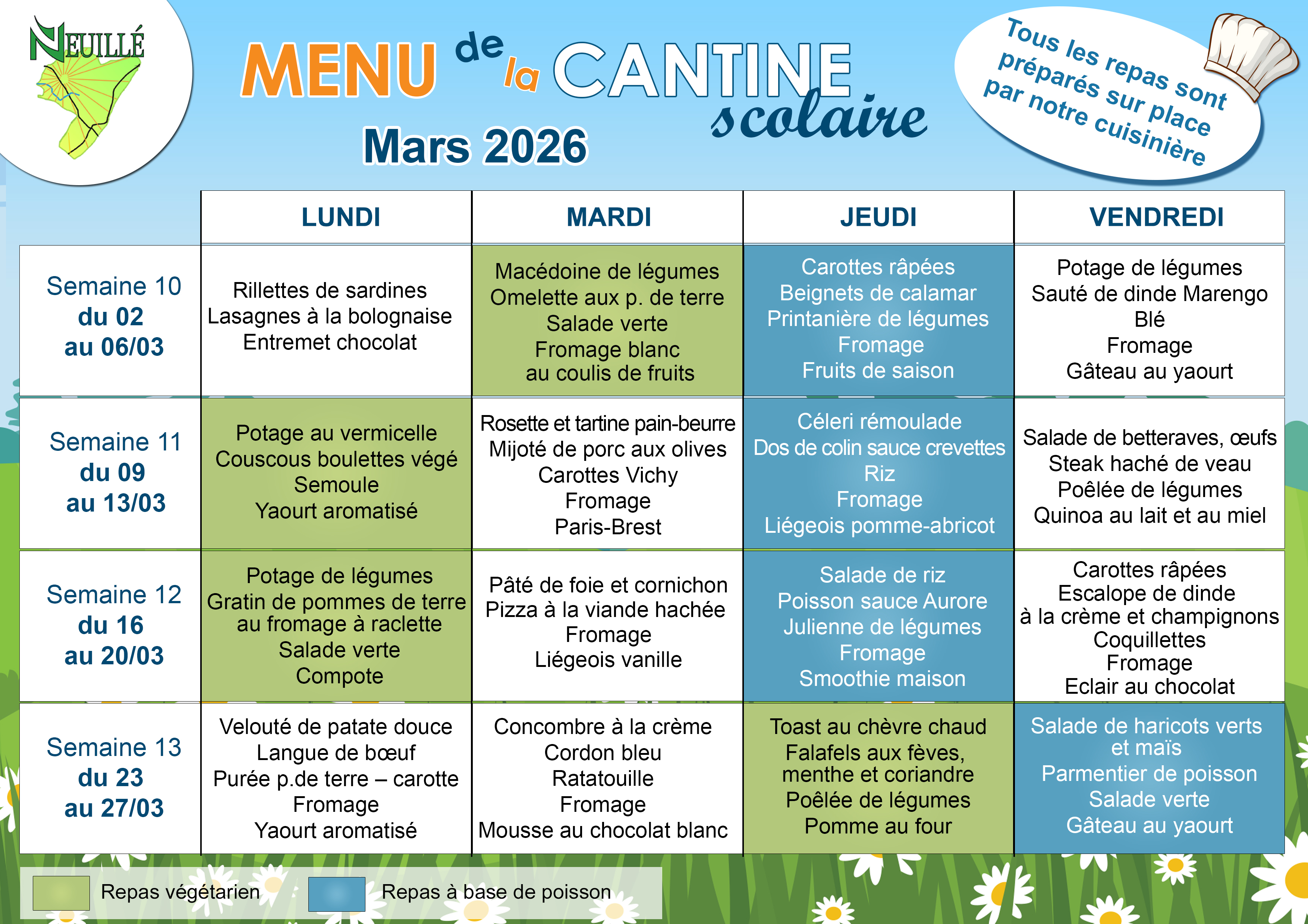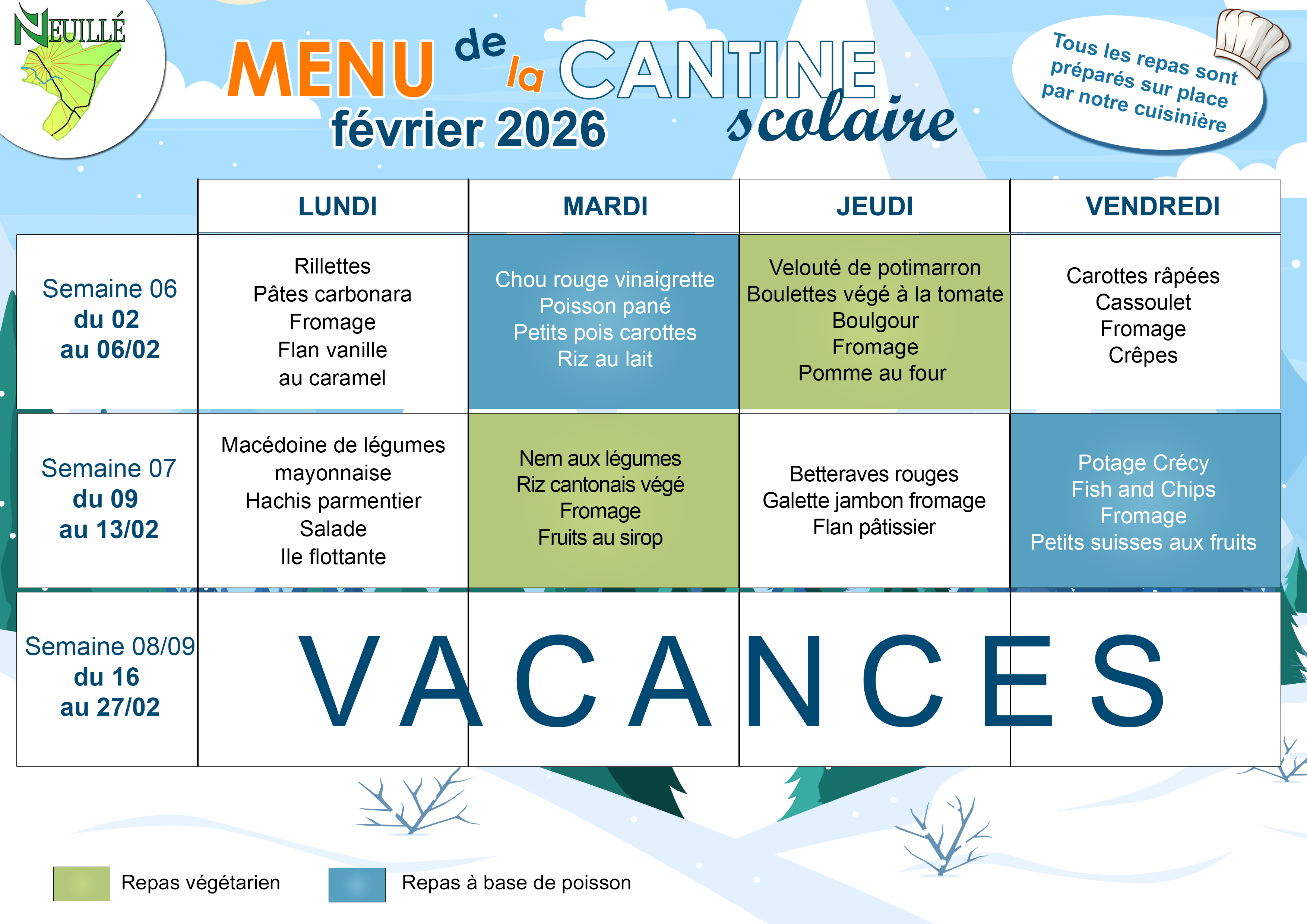 Une fois par semaine un menu végétarien et à base de poisson sont proposés aux enfants.